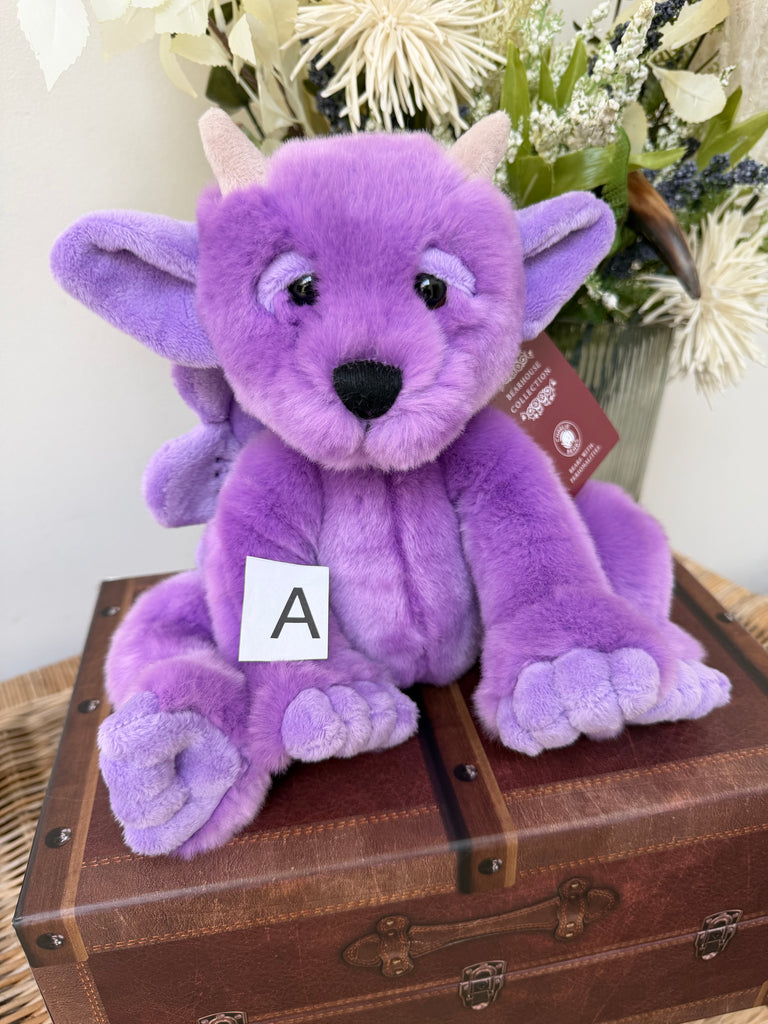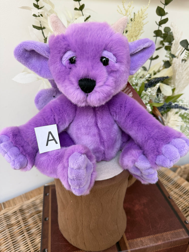 Portcullis Plush Bearhouse Small 20cm regal purple Gargoyle featuring adorable little horns, and wings. A mini guardian with mighty charm and a storybook feel that sparks the imagination.