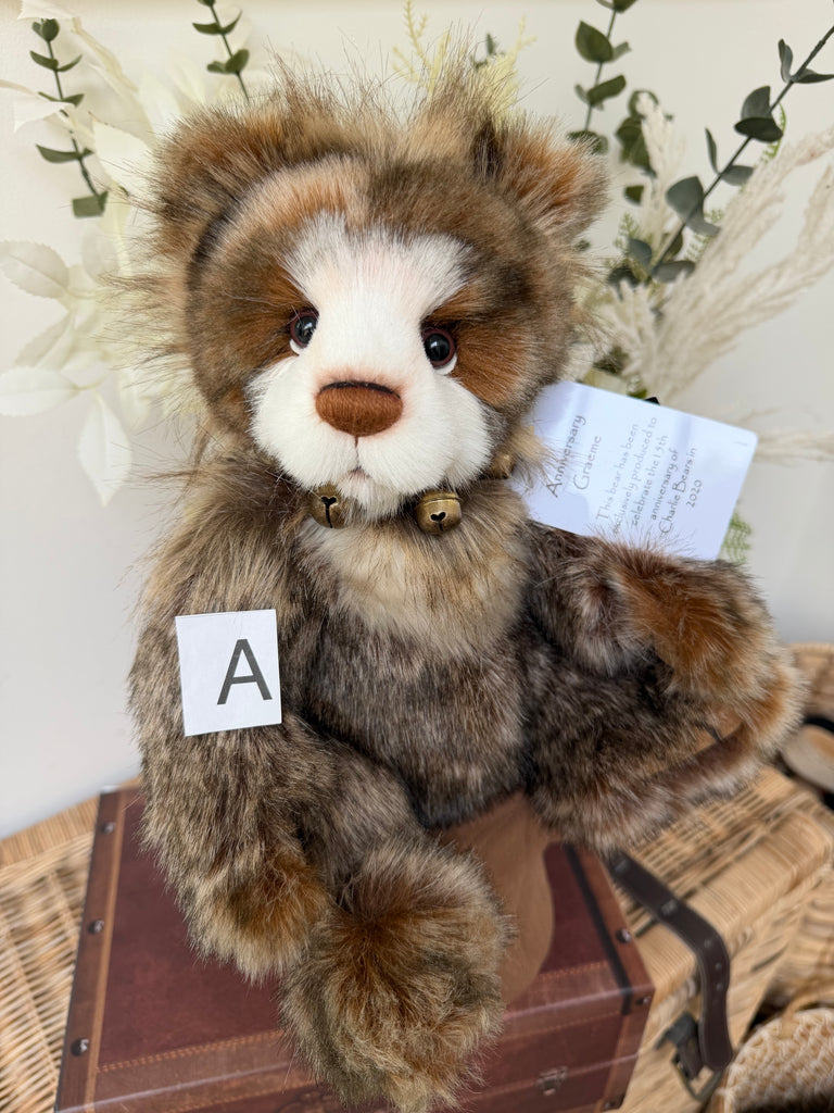 Based on Graeme from Charlie Bears 2010 Collection, this smaller Anniversary size features a combination of warm chestnut brown tones & white with a paw-fectly fluffy mane.