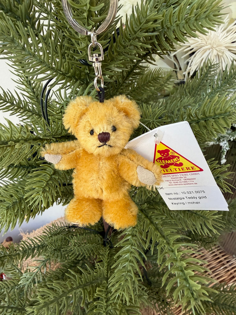 Clemens 8cm Miniature Golden Bear Key Ring ( one way jointed with head movement )