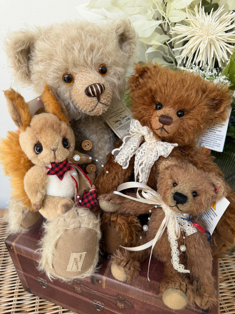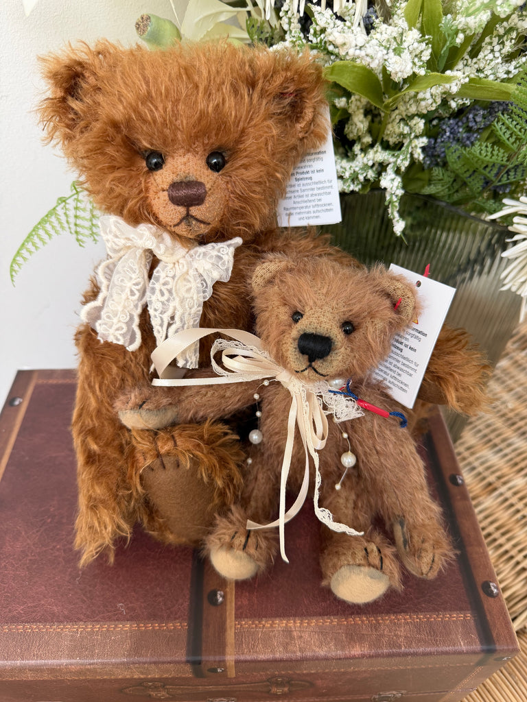 With his gentle expression, soft mohair fur, and elegant lace bow, Teddy Fussel is a true favorite among collectors.
