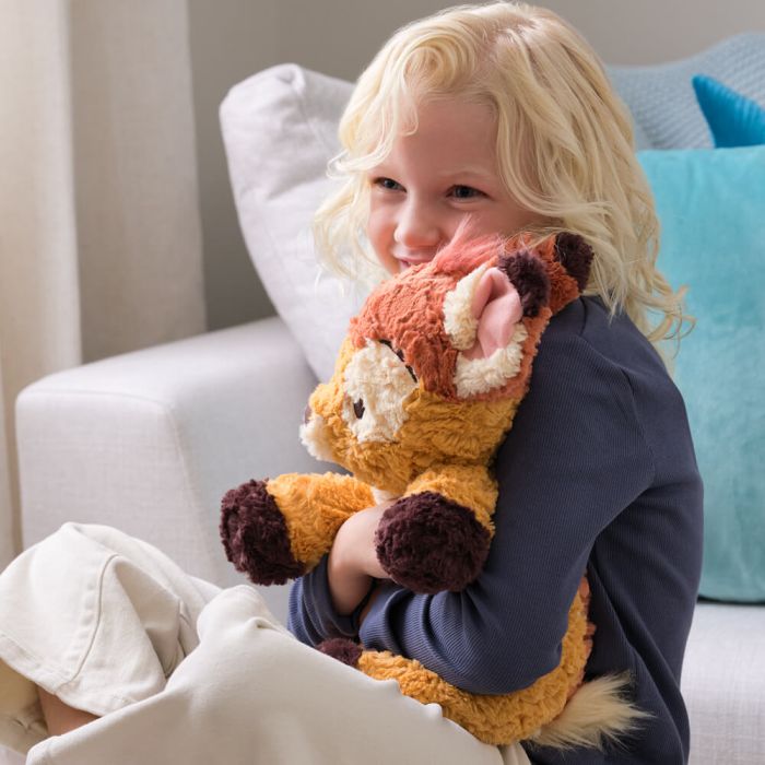 Bambi is here from the forest to play! This cuddly stuffed animal has been crafted in GUND's signature Cozys Collection style. Cozys are cuddly companions made from soft, textured fabrics that feel as familiar as hugging an old friend! This irresistibly cute Bambi plush features the iconic baby deer with multi-hued brown plush ranging from golden amber to deep chocolate brown. Bambi's upturned ears have a soft pink plush lining, and his embroidered facial expression includes cute eyelash details and a soft faux-suede nose. Bambi's back features a realistic spotted pattern, with a burnt-orange head, matching ears, and a fluffy cream-coloured tail. Like all Cozys animals, this fawn has soft swirls of high-pile plush and floppy limbs built for hugging.