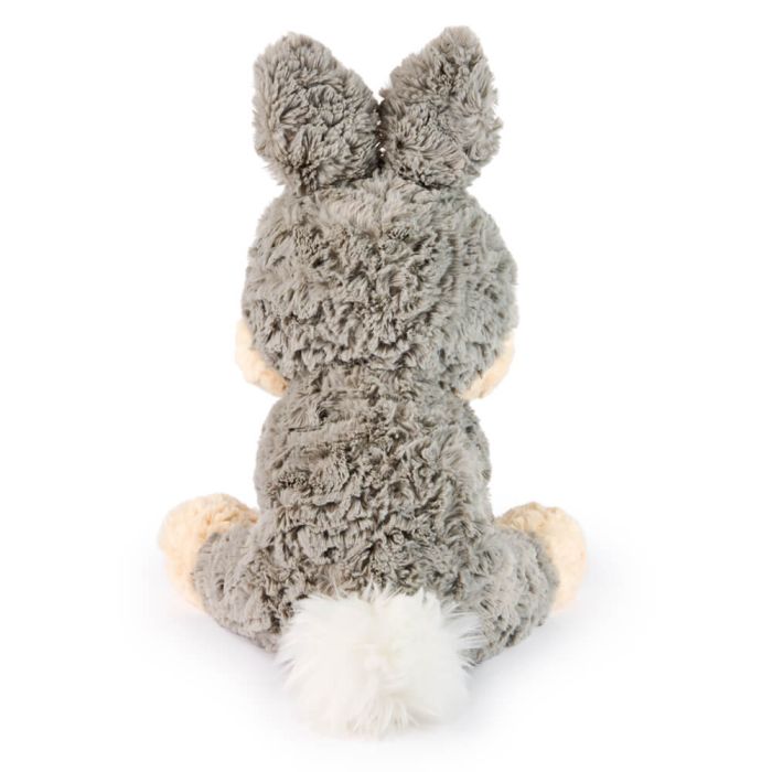 - Thumper has soft grey and cream plush, long ears, and a faux suede nose