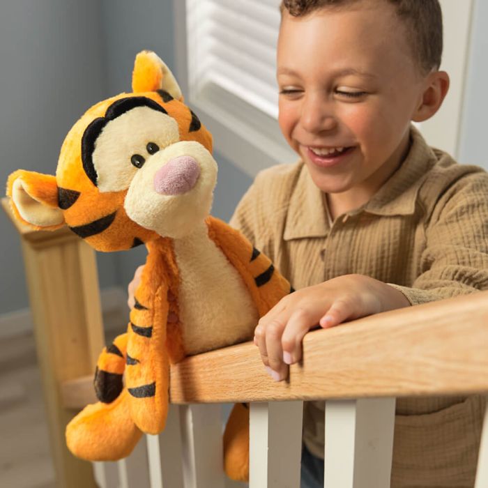 Disney’s Tigger is bouncing right into playtime! This carefree, fun-loving friend from The Hundred Acre Wood loves nothing more than a good hug, and now he’s here to bring the cuddles straight home. This soft Tigger plush features authentic character details from Winnie the Pooh, including Tigger’s bright orange fur with black stripes, pastel yellow belly, and a curly tail ready for a bounce. Tigger is as expressive and irresistibly cute as ever, sporting a wide-eyed grin with bold eyebrows and a friendly smile just like he has in Winnie the Pooh! This plush makes a thoughtful, timeless gift for fans of all ages, both as decor and to inspire little ones to act out their own imaginative play adventures.