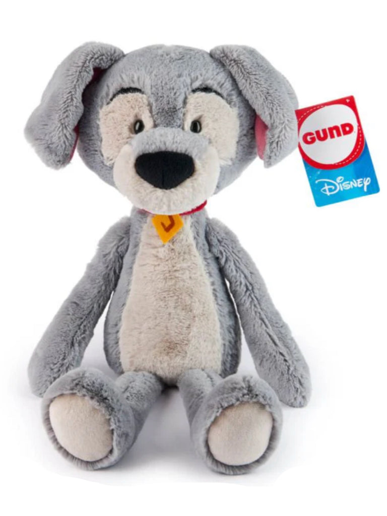 Tramp, the freewheeling mutt from the classic film Lady and the Tramp, is here as a fun and floppy plush! This charming, pup features soft grey plush fur with short, floppy ears, black eyebrows, a black nose, and the iconic red dog collar that becomes his at the movie's end. Like the rest of the Disney GUND Toothpick collection, this adorable plush was crafted with GUND Toothpick bear's signature slender frame and long, floppy limbs that dangle and make them oh-so-posable. These whimsical friends are sized for on-the-go play and going anywhere the adventure goes!