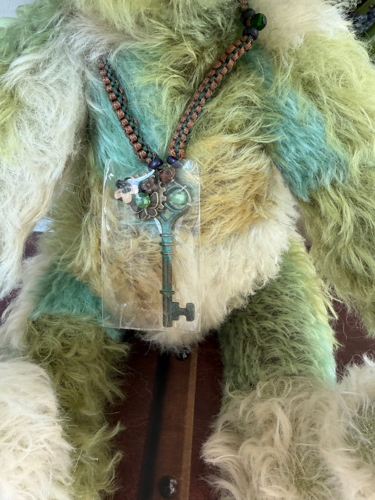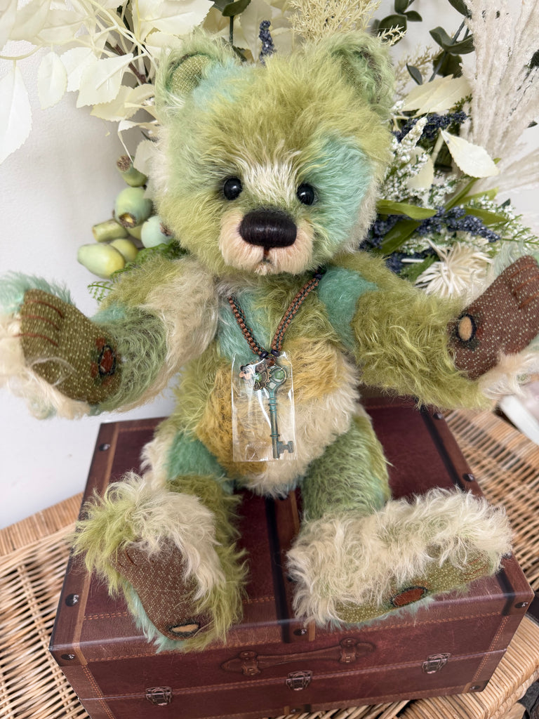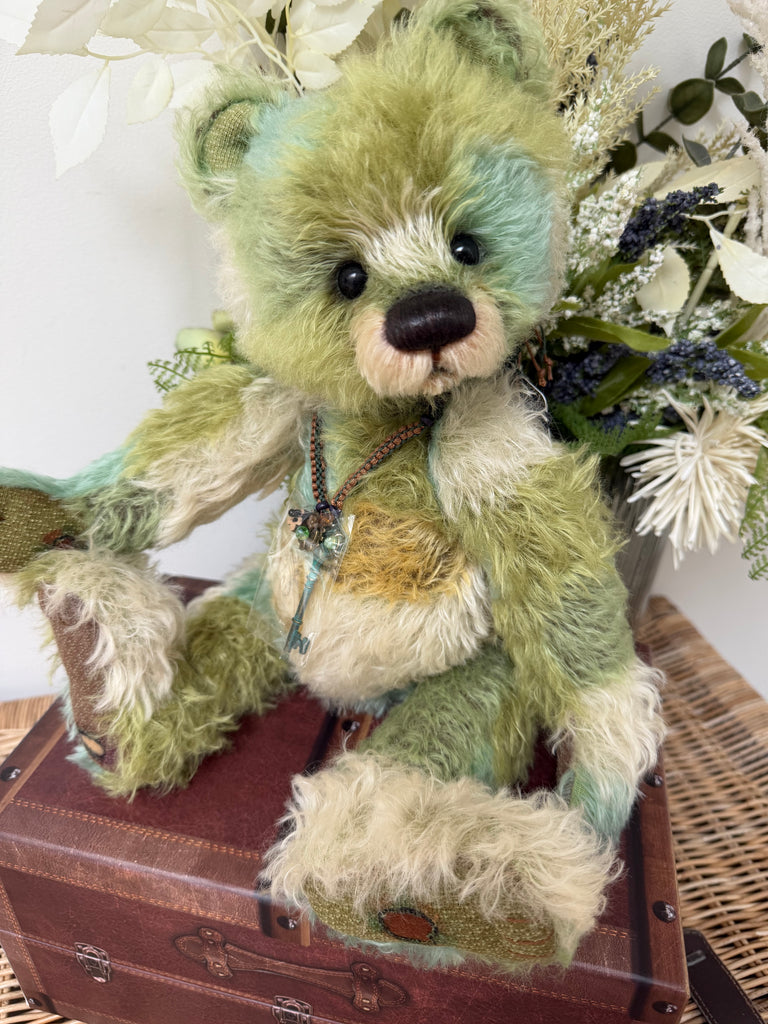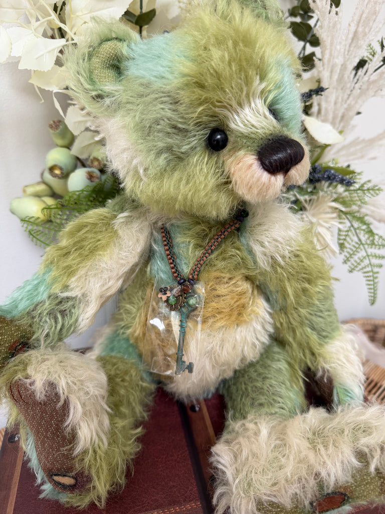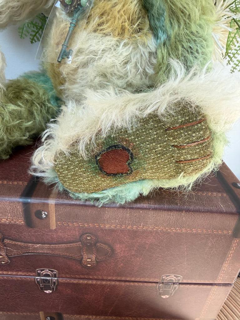 Made from the finest mohair in pretty shades of green and cream "Fingal" is sure to leave paw-prints on your heart and will stand out in any collection.