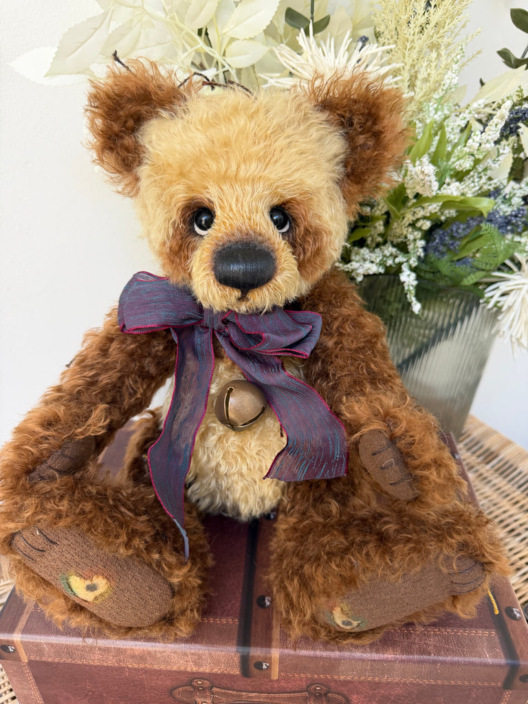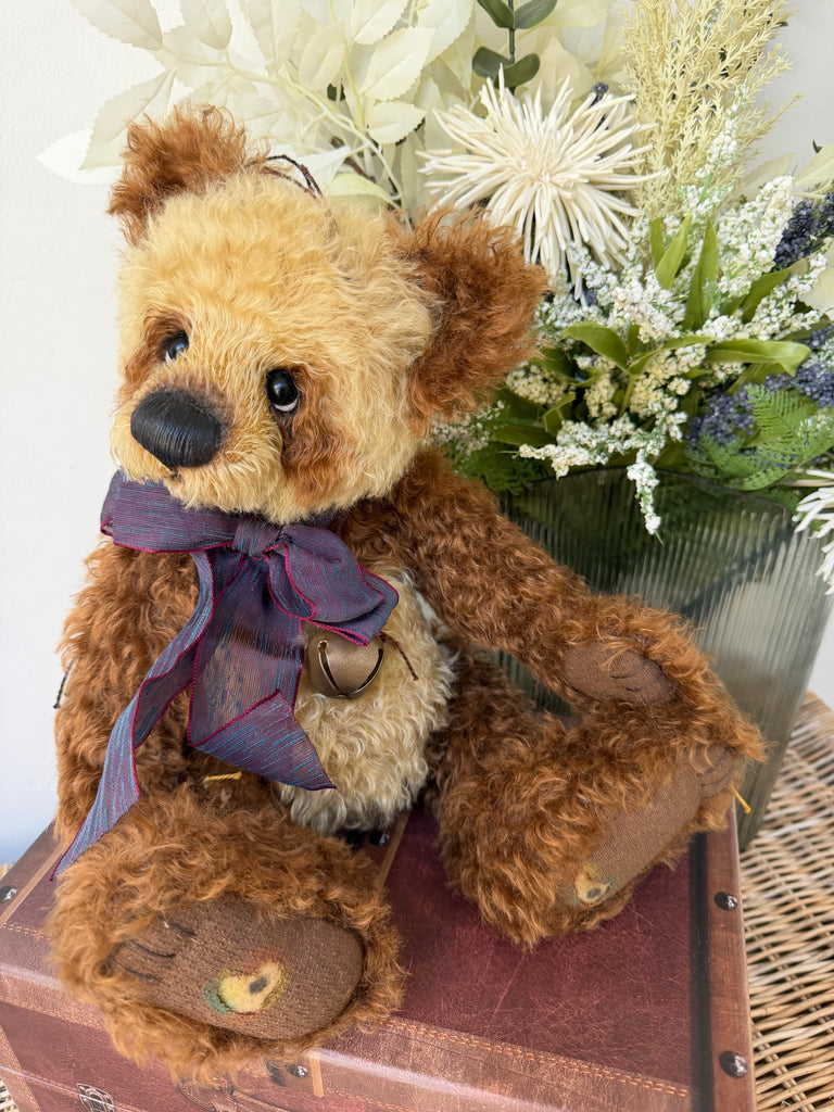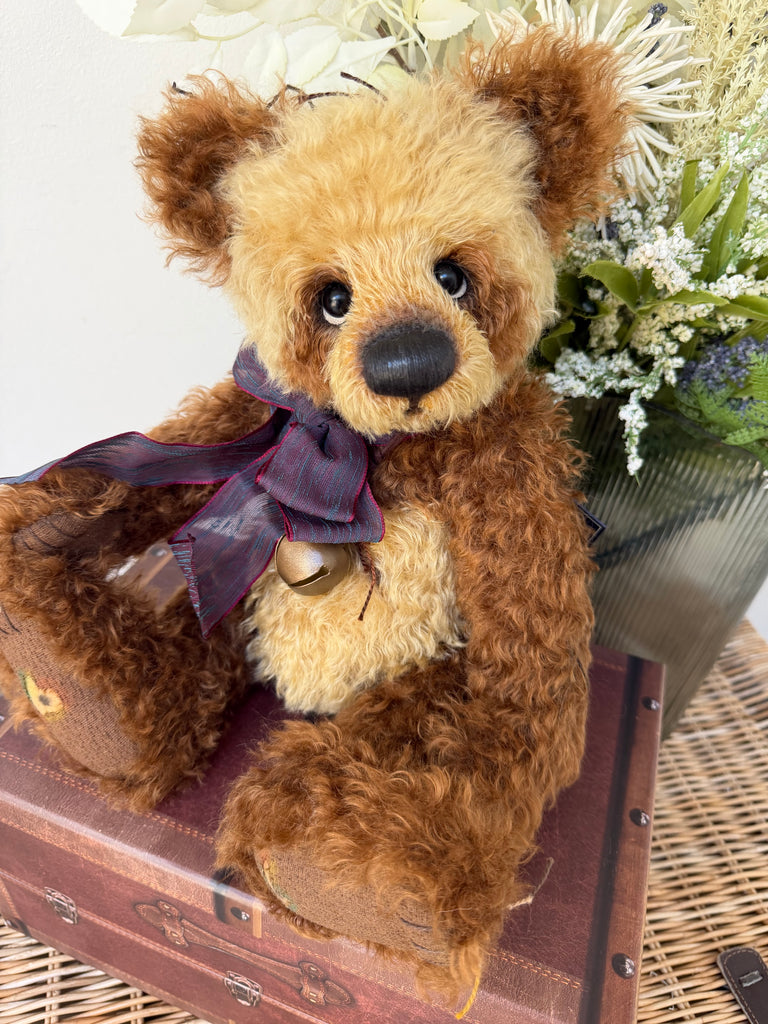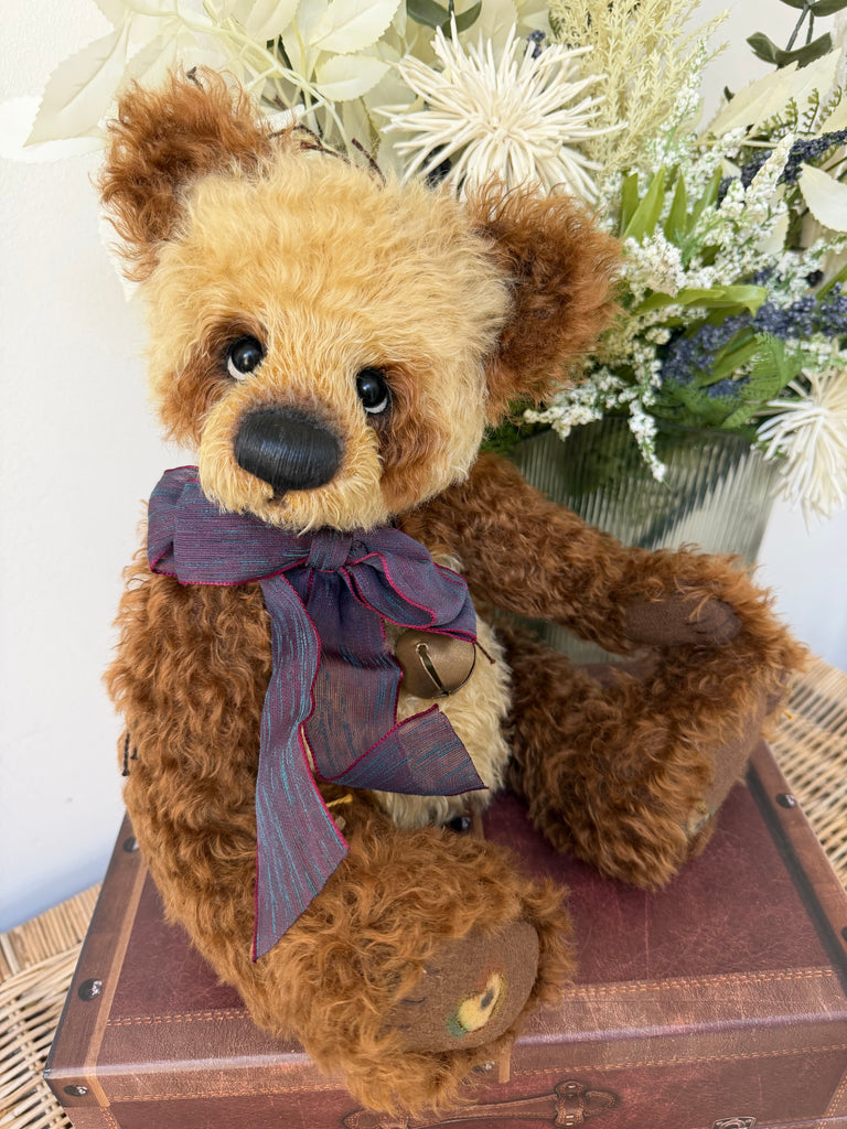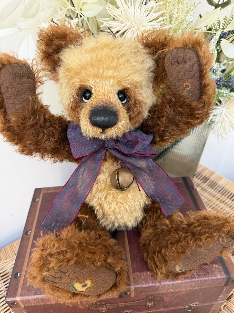 Featuring high set ears, the addition of tiny eye whites to create Charlie's signature "who me ? " look with wear and repair details / stitches to give Mr Harrison the aged appearance of a much loved antique, attic style bear.