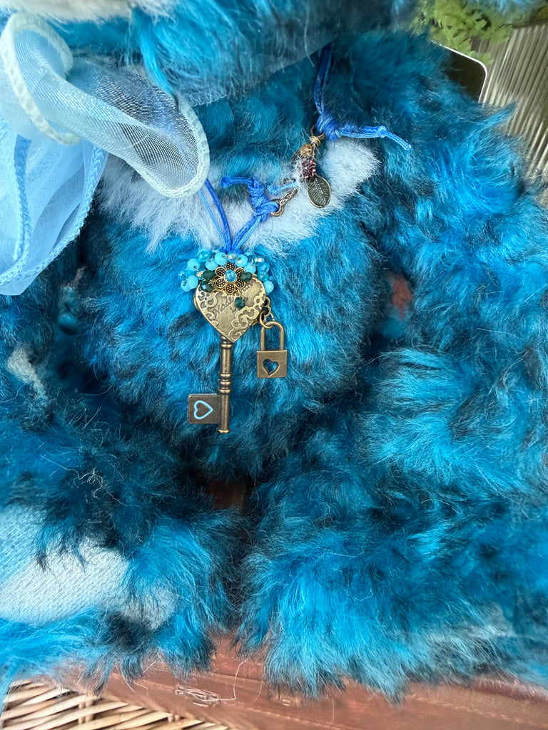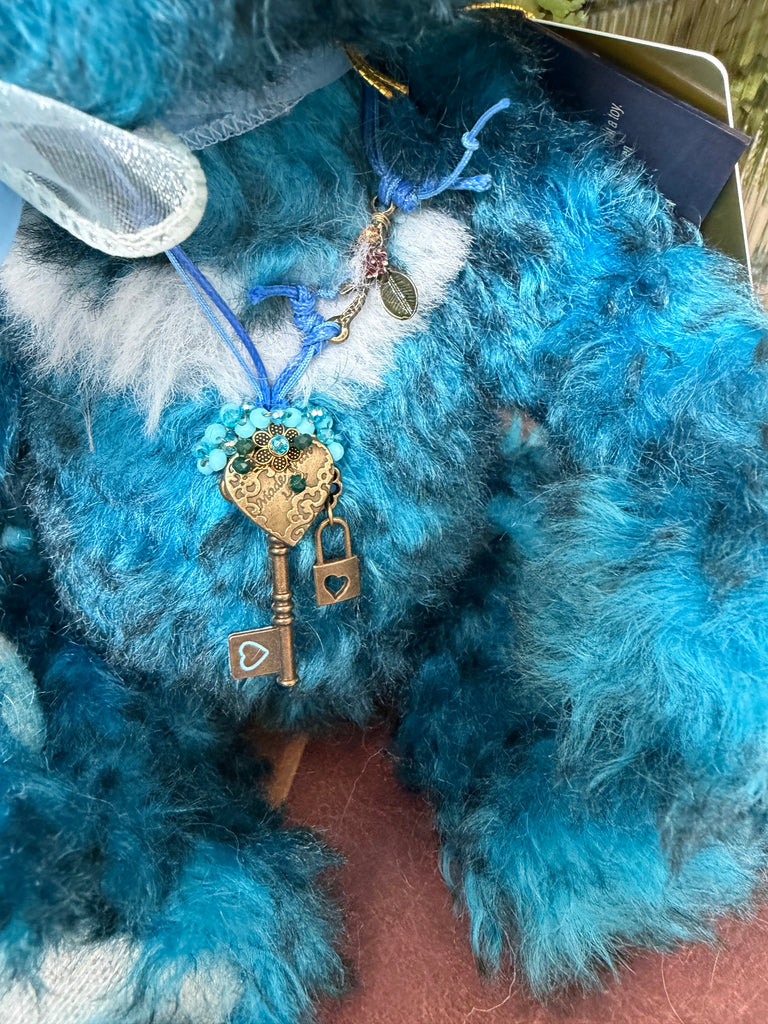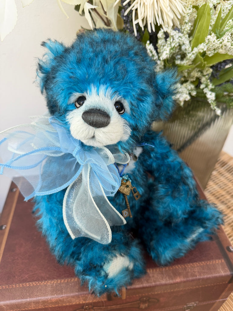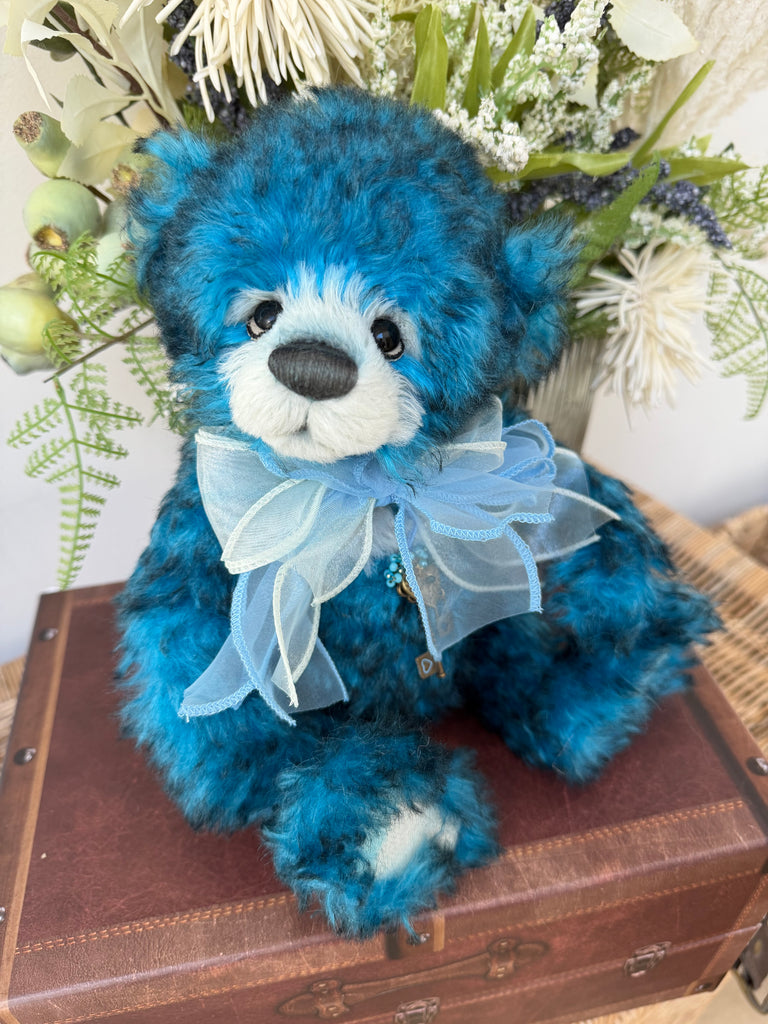 Narnia is a stunning blue bear from the 2024 Collection, and her unique colouring will stand out in any collection. Made with the utmost care and finest attention to detail, Narnia is fully jointed and has been made from a combination of Alpaca & Mohair.