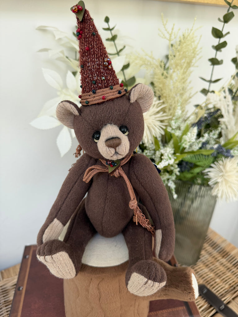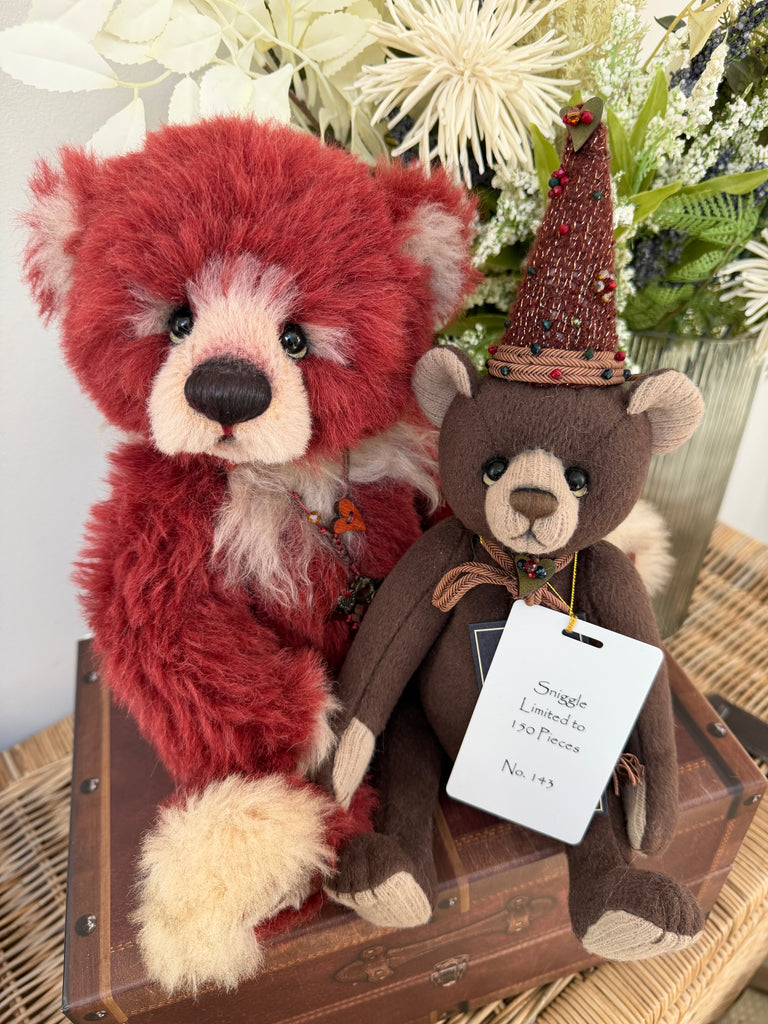 Sniggle is a bear-utiful dark brown wool and plush clown bear who would love to join your hug. Limited edition of only 150 pieces globally.