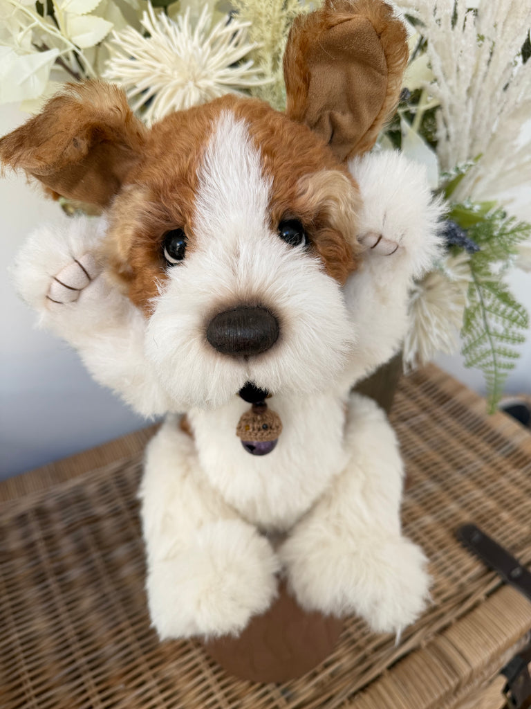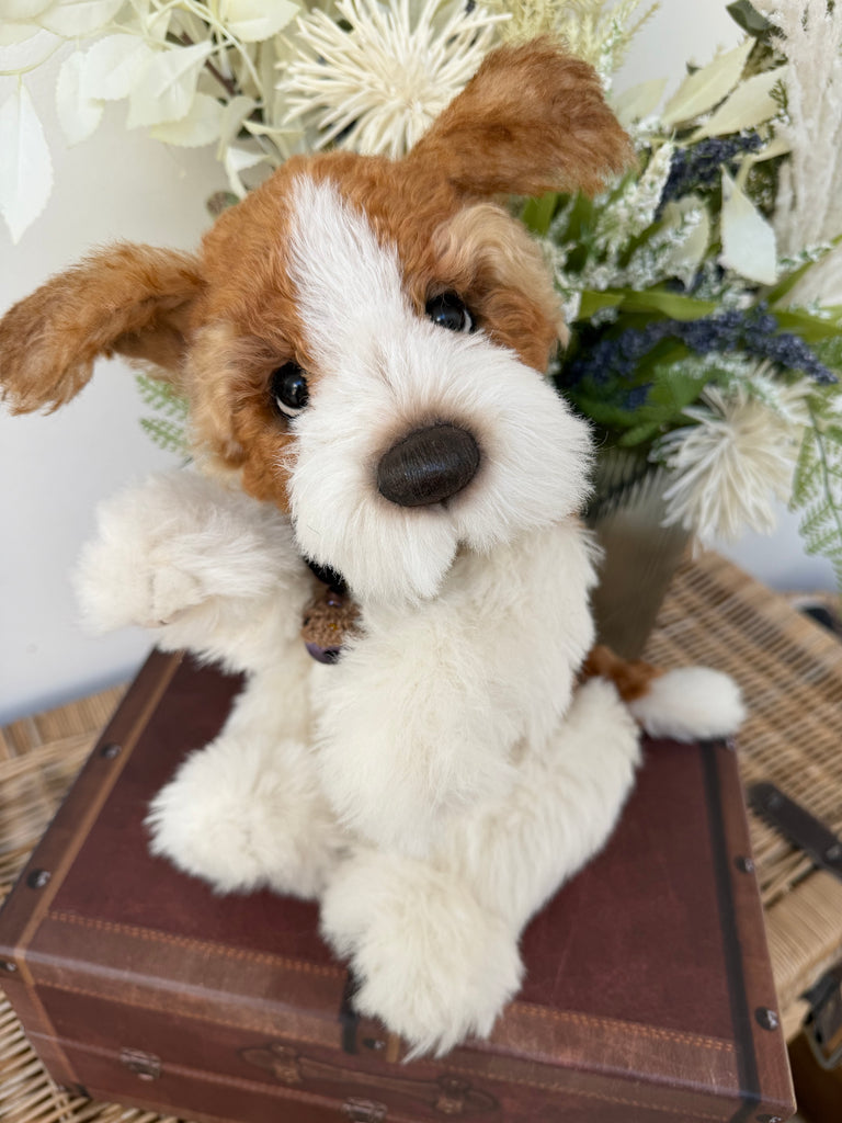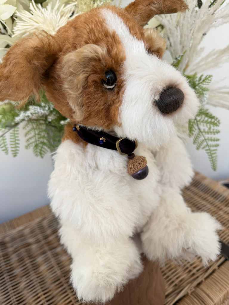 Wigglesworth is a playful pup made from sumptuously soft and thick light brown and cream alpaca and mohair fur, making him paw-fect for snuggling.