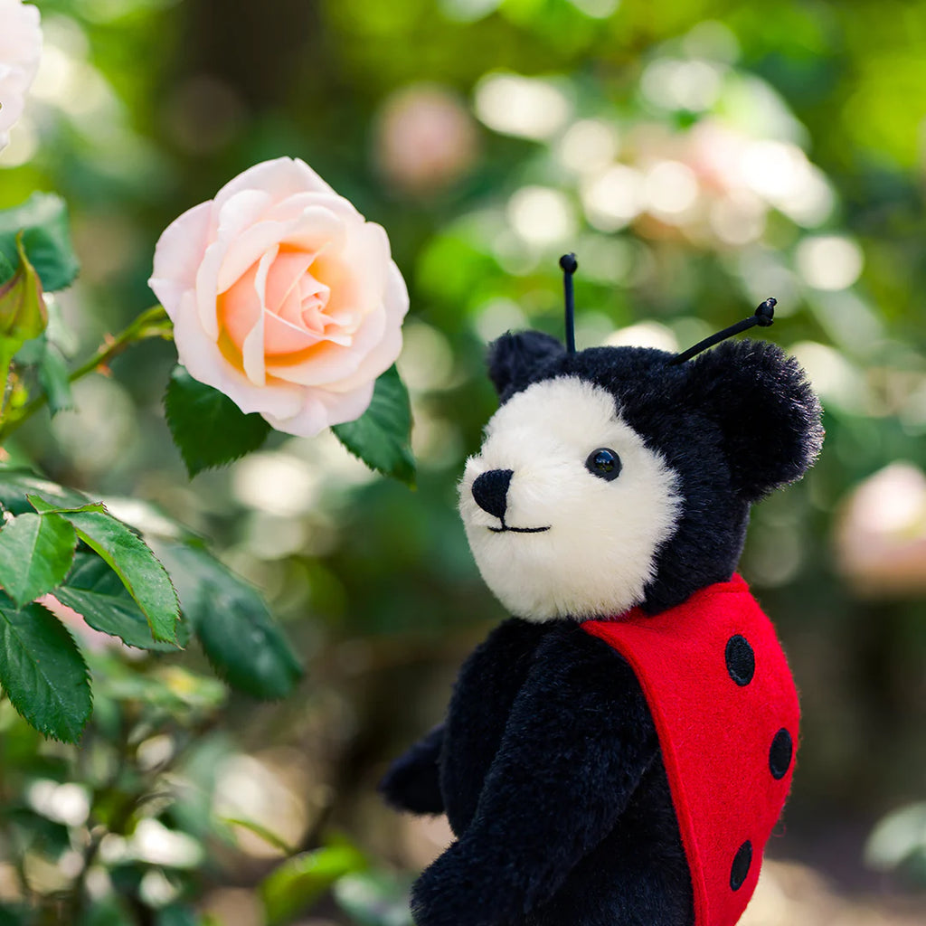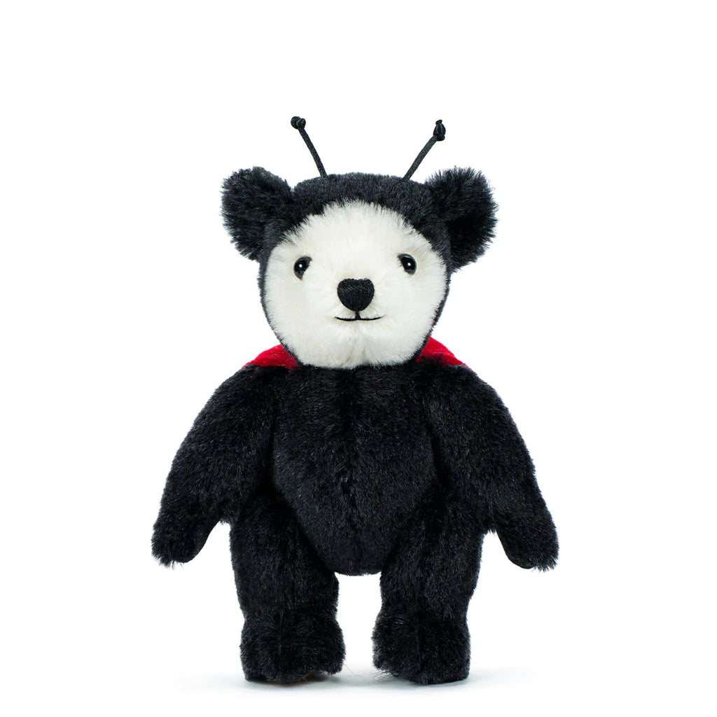 Crafted from the finest black and white short mohair and features a pure wool felt ladybird ‘shell’ adorned with embroidered spots, and a pair of ‘antennae’ to finish.