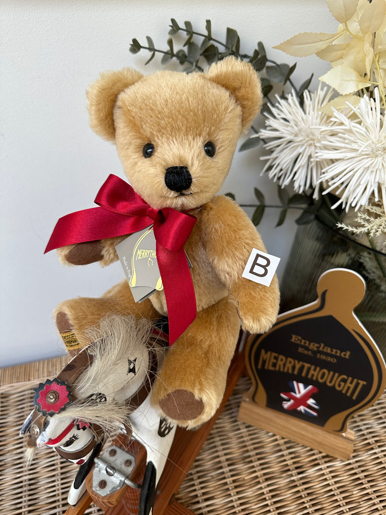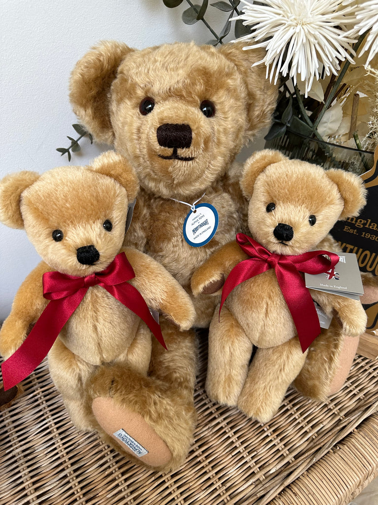 London Gold is an original and iconic Merrythought design expertly hand crafted from a velvety soft golden mohair, with oak brown wool felt paws. A real classic who requires nothing more than his red satin bow to complete his look.