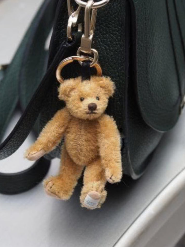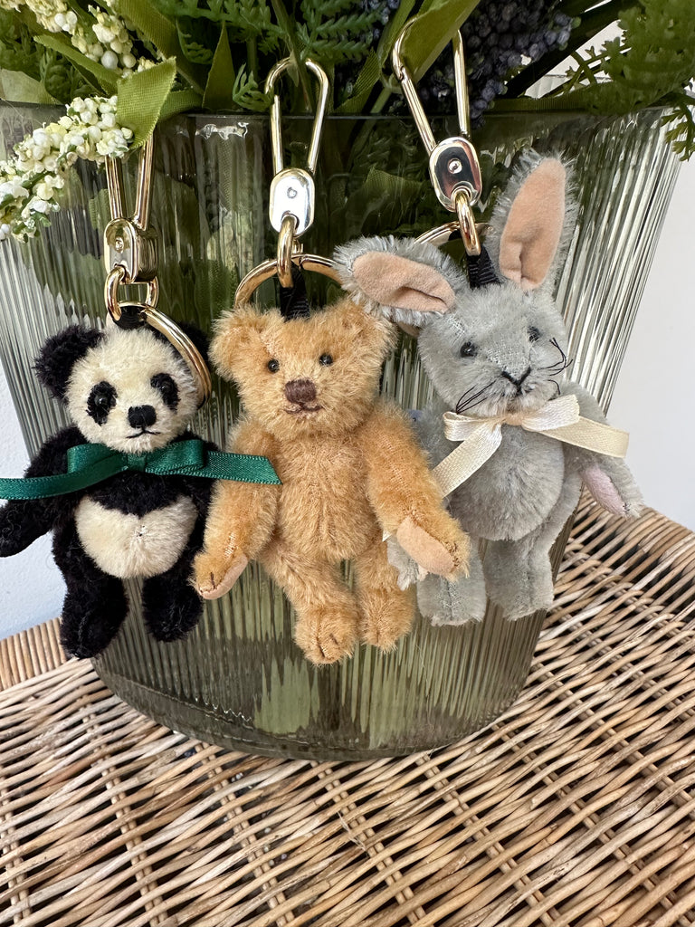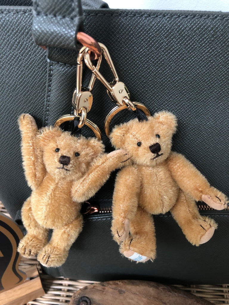 Made from the finest mohair, this little character is fully jointed and secured onto premium 18 carat gold-plated hardware offering both a keyring loop and a bag clip attachment.
