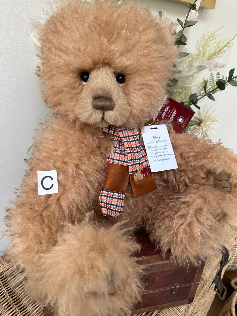 Plumo is a registered trademark of Charlie Bears, and Plumo bears are created using a variety of luxurious plush fabrics, mohair and alpaca fibres.