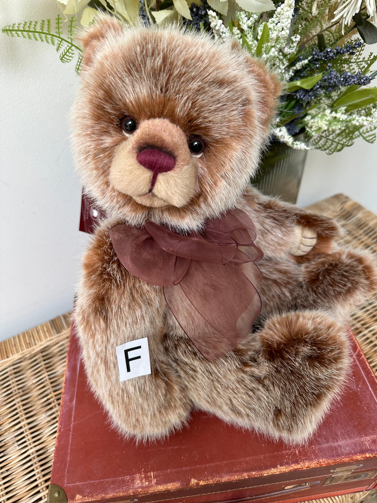 Part of Charlie Bears Secrets Collection and only available from selected Paw Store stockists. Crafted from brown medium plush with white tipping giving him a sumptuously soft feel.