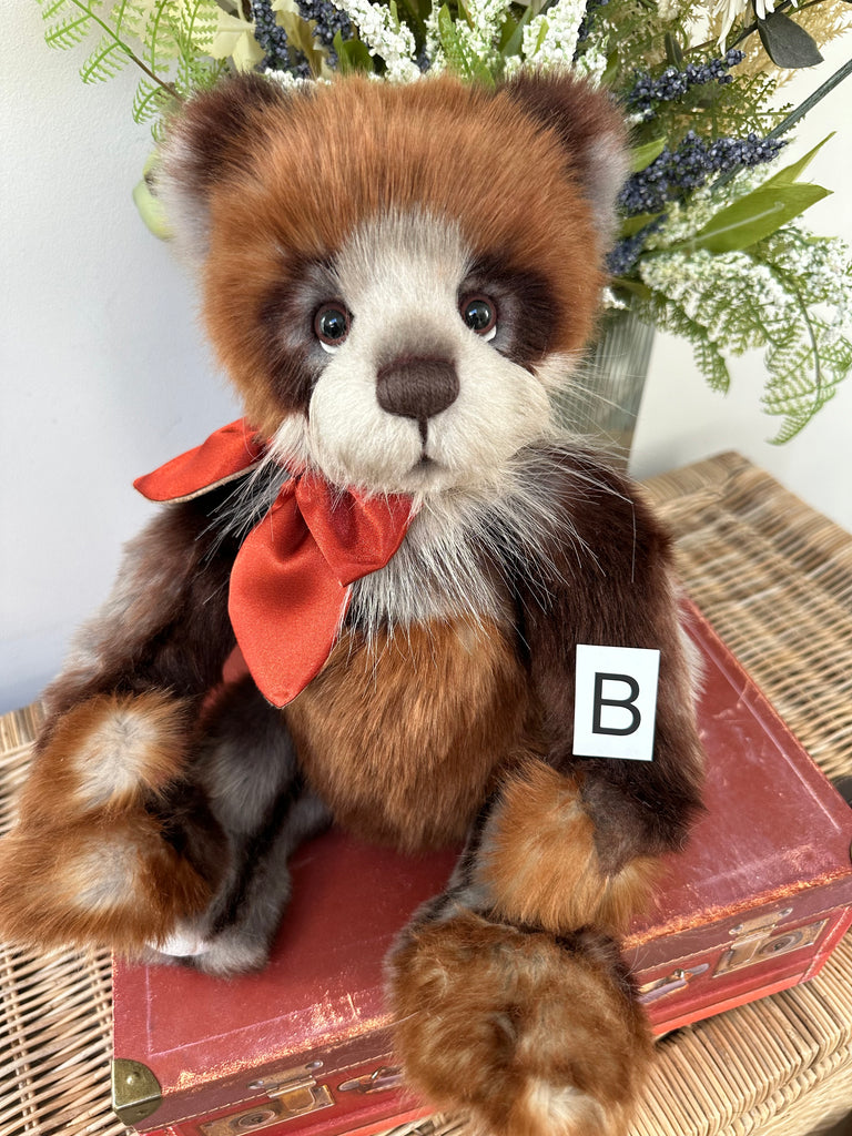 Part of Charlie Bears Secrets Collection and only available from selected Paw Store stockists. This paw-fect panda bear and has been crafted from luxuriously soft medium plush in shades of warm browns, burnt orange and grey.