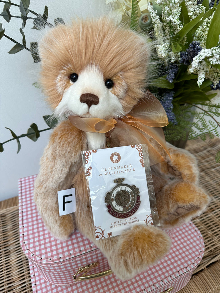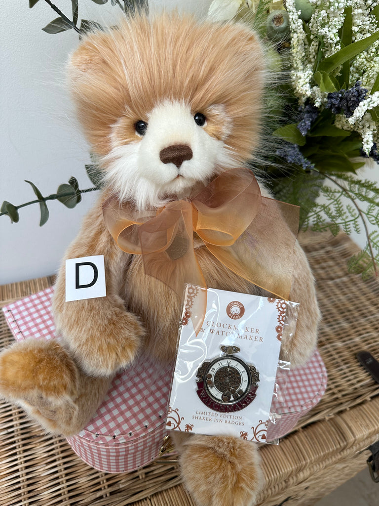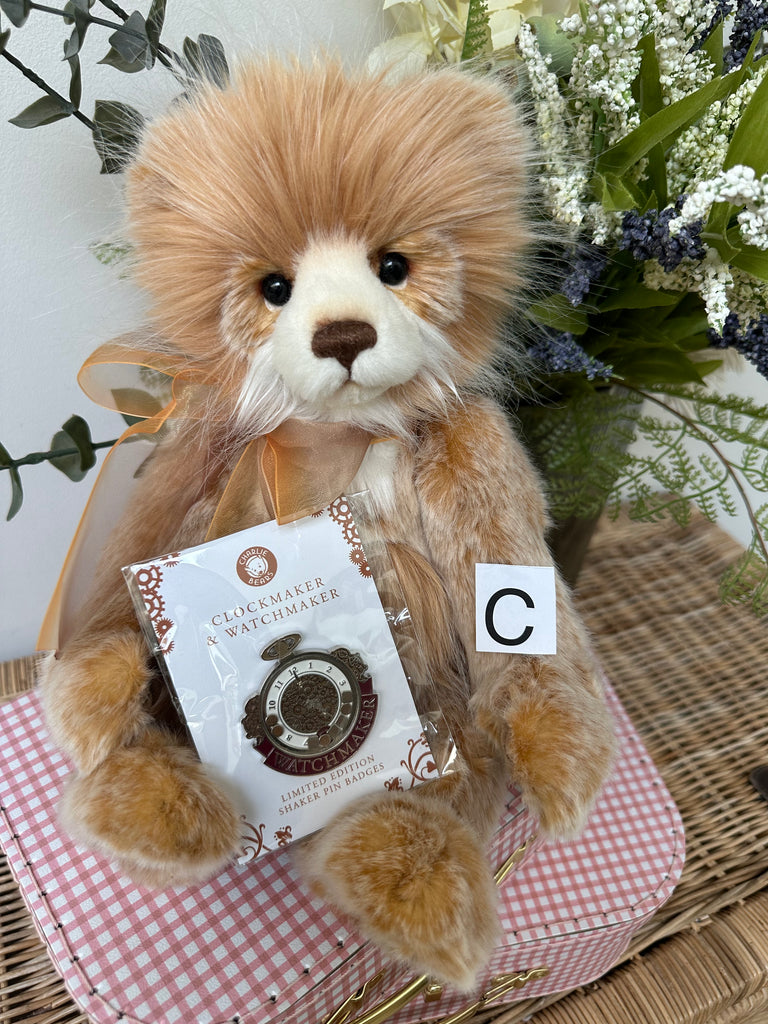 Watchmaker fully jointed Plush Teddy Bear with an exclusive matching Limited Edition Shaker Pin Badge included with each Watchmaker Bear purchase !!!