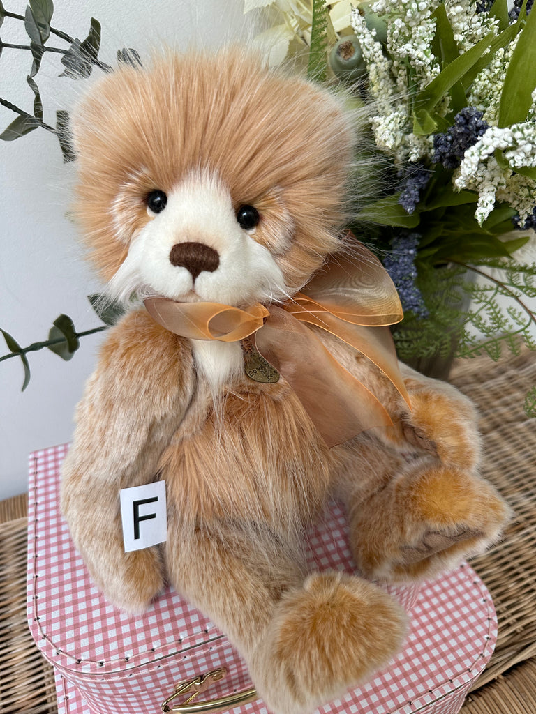 Watchmaker is a beautiful fully jointed Plush Teddy Bear in Autumn colours. Part of Charlie Bears Cuddletime Collection and therefore made in fewer numbers. Featuring hight set ears, a hand stitched nose, sculptured paw pads & such an adorable expression. He is sure to make a life long connection at first glance & for our collector who love "bear pairs" Clockmaker is listed separately.