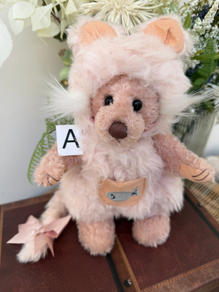 Cat Nap 25cm Fully Jointed Standing Teddy Bear dressed as a kitten.