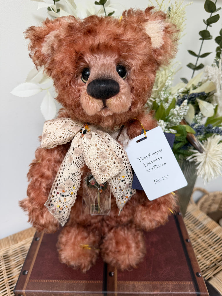 A stunning fully jointed collectable bear who is from Charlie Bears 2023 The Clock Tower Collection.