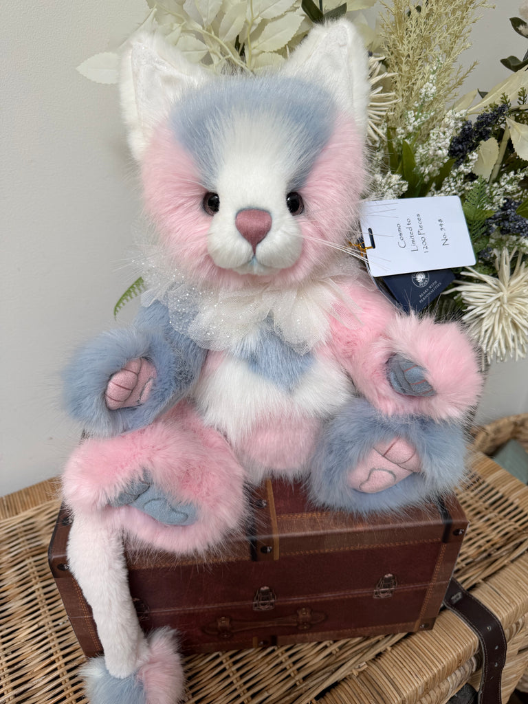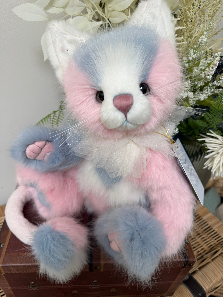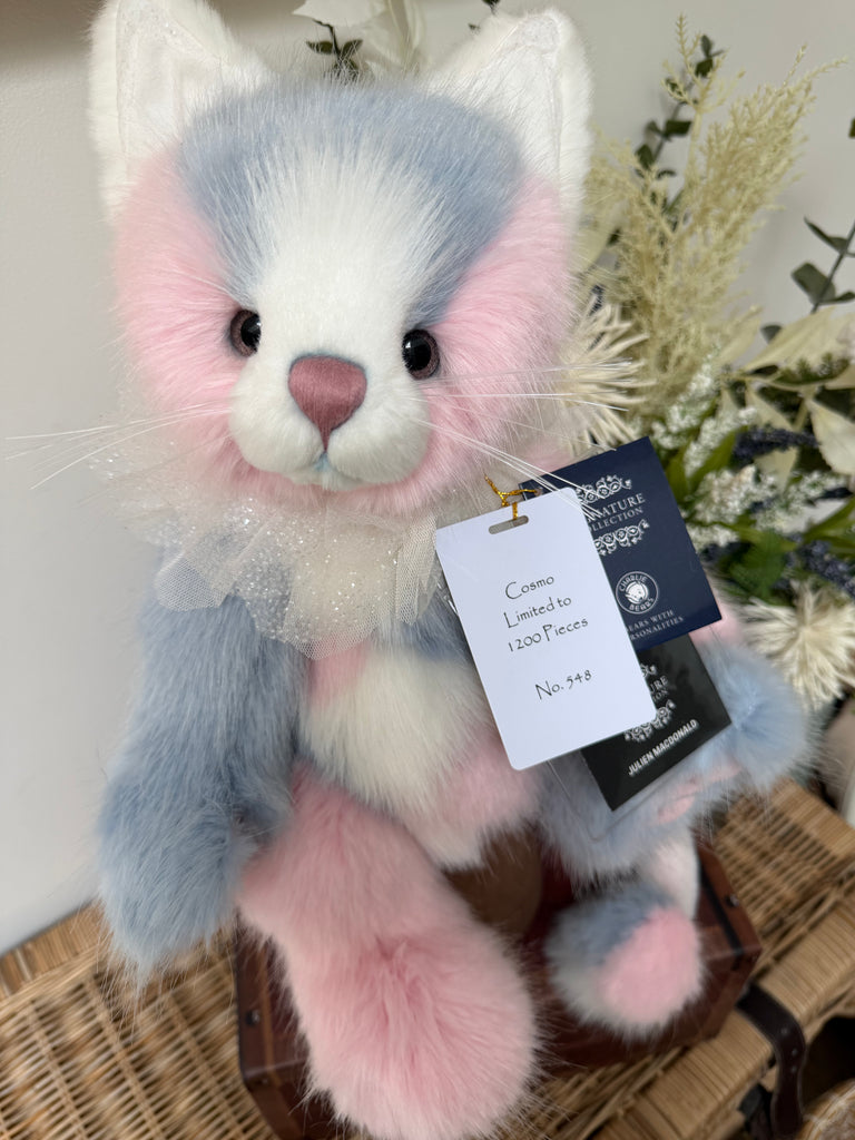 Filled with Juliuen's signature sparkle and red-carpet glamour " Cosmo " is sure to be highly sought after by Charlie Bears Collectors and cat lovers alike.
