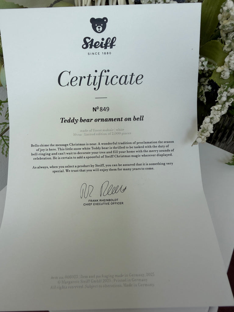Steiff Teddy Bear Ornament on Bell