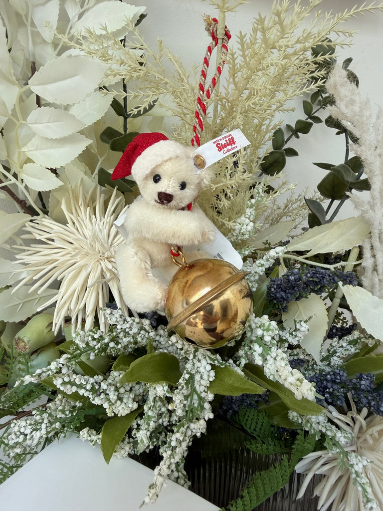 This little snow white Teddy bear is thrilled to be tasked with the duty of bell-ringing and can’t wait to decorate your tree and fill your home with the merry sounds of celebration.
