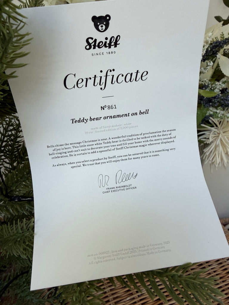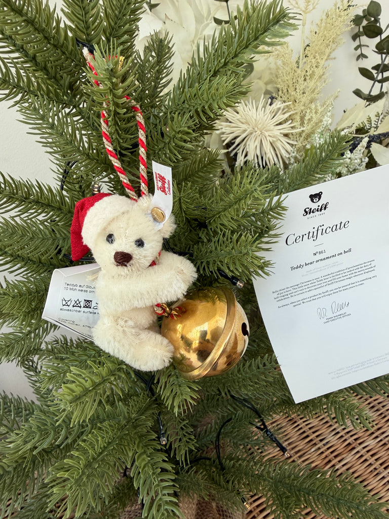 Steiff Teddy Bear Ornament on Bell