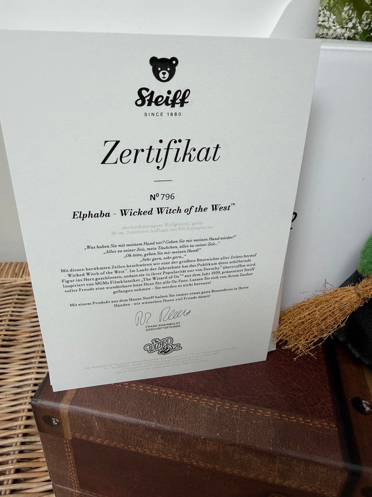 Steiff Green Witch Elphaba Wicked Witch of the West No 796