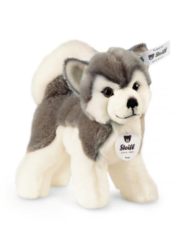Bernie husky has a grey and white pelt and measures 17 cm. He’s made of cuddly soft plush and is a fun-loving companion for any child. The little dog loves frolicking around the child’s room and showing its owner the big wide world. Bernie is the perfect size to accompany you everywhere.