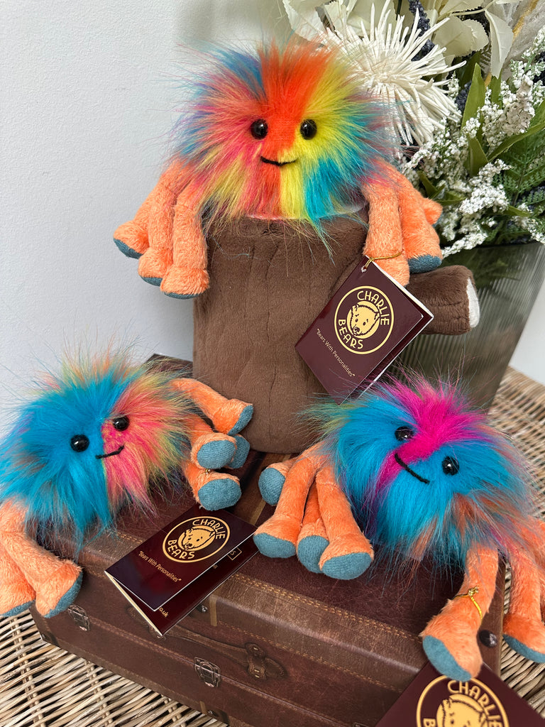 Charlie Bears Plush Collection includes a variety of bears and animals in different sizes, colours, and styles suitable for ages 3 and above.